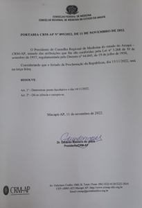No dia 14/11 será ponto facultativo.  As atividades no CRM-AP serão retomadas no dia 16/11 (quarta-feira).